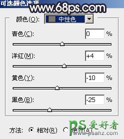 2、创建可选颜色调整图层,对黄、绿、中性色进行调整,参数设置如图3 - 5,效果如图6。这一步主要把草地颜色转为红褐色。