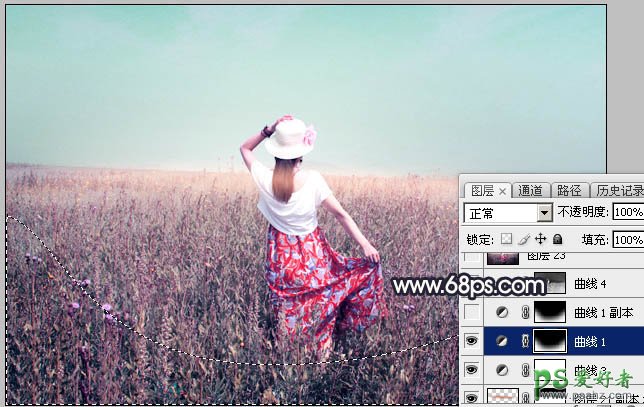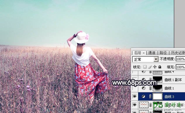 12、创建曲线调整图层,对RGB、红、绿、蓝通道进行调整,参数及效果如下图。这一步把图片高光区域调亮一点,暗部增加蓝紫色。