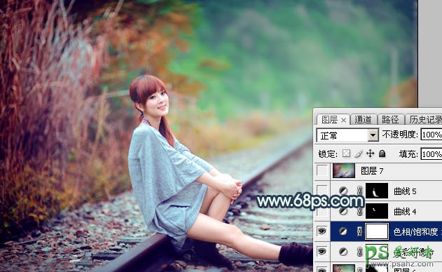 PS漂亮女生照片调色:给外景铁路上的可爱女生照片调出甜美的青红