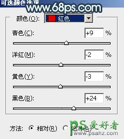 21、创建可选颜色调整图层,对红色进行调整,参数及效果如下图。这一步把图片中的红色调暗一点。
