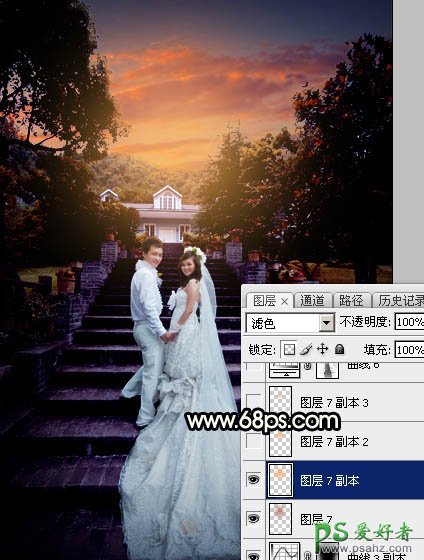 21、按Ctrl + J 把当前图层复制一层,锁定像素区域后填充橙黄色:#F7AA46,然后把混合模式改为“滤色”,效果如下图。