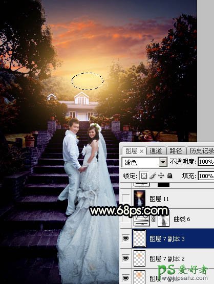 23、按Ctrl + J 把当前图层复制一层,同样再缩小一点,效果如下图。这几步给图片渲染高光。