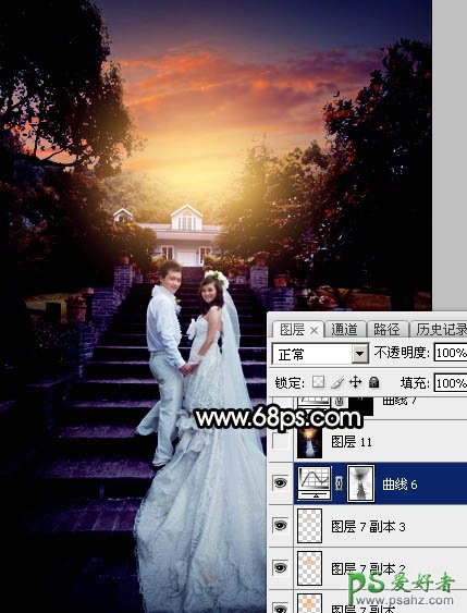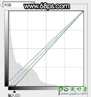 24、按Ctrl + Alt + 2 调出高光选区,按Ctrl + Shift + I 反选得到暗部选区,然后创建曲线调整图层,对RGB、绿、蓝通道进行调整,参数及效果如下图。这一步把图片暗部调暗一点,并增加蓝紫色。