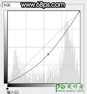 25、创建曲线调整图层,对RGB通道进行调整,参数设置如图43,确定后把蒙版填充黑色,然后用柔边白色画笔把人物背光区域擦出来,效果如图44。