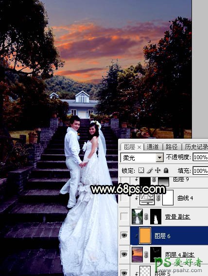 12、创建纯色调整图层,颜色设置为橙黄色:#F7AA46,确定后把混合模式改为“柔光”,再创建剪切蒙版,效果如下图。