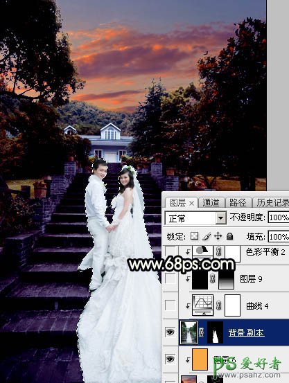 13、把背景图层复制一层,按Ctrl + Shift + ] 置顶,用钢笔工具把人物部分抠出来,转为选区后添加图层蒙版,如下图。