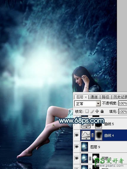 25、创建曲线调整图层,对RGB通道进行调整,稍微压暗一点,确定后把蒙版填充黑色,然后用柔边白色画笔把边角区域擦出来,效果如图51。
