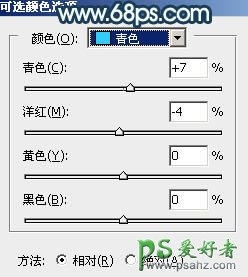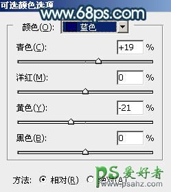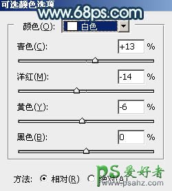 13、创建可选颜色调整图层,对青、蓝、白进行调整,参数设置如图26 - 28,效果如图29。这一步给图片增加淡青色。