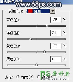 12、创建可选颜色调整图层,对红、杨红、白、中性色进行调整,参数设置如图24 - 27,确定后创建剪切蒙版,效果如图28。这一步适当减少图片中的红色和洋红色。