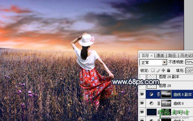 25、按Ctrl + J 把当前曲线调整图层复制一层,不透明度改为:70%,效果如下图。