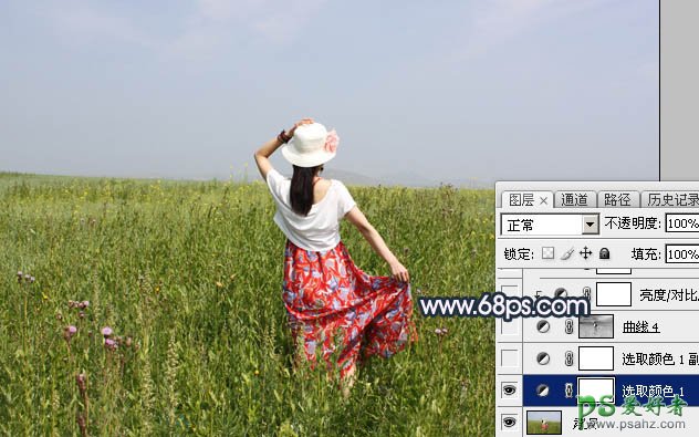 PS调色教程:给河边上自拍的清纯玉腿少女艺术照调出唯美的青...