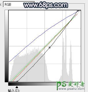 3、按Ctrl + Alt + 2 调出高光选区,按Ctrl + Shift + I 反选得到暗部选区,然后创建曲线调整图层,对各通道进行调整,参数及效果如下图。这一步把图片暗部调暗,并增加蓝紫色。
