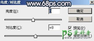 4、创建亮度/对比度调整图层,适当增加对比度,参数设置如图6,确定后按Ctrl + Alt + G 创建剪切蒙版,效果如图7。这一步给暗部增加对比度。