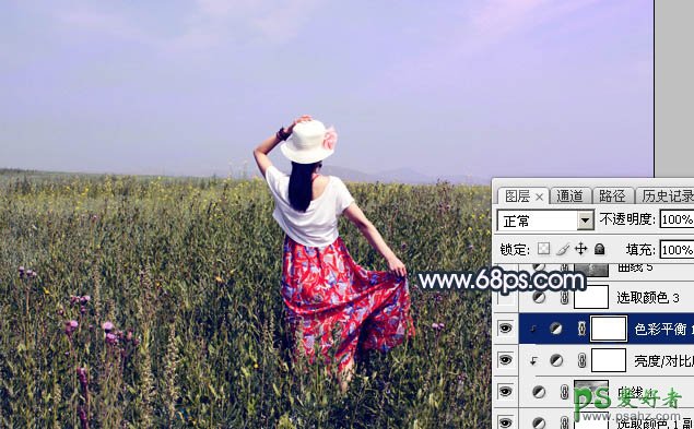 5、创建色彩平衡调整图层,对阴影、中间调、高光进行调整,参数设置如图8 - 10,确定后创建剪切蒙版,效果如图11。这一步给图片暗部增加蓝红色。