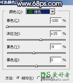 6、创建可选颜色调整图层,对黄、绿、白进行调整,参数设置如图12 - 14,效果如图15。这一步把草地部分的黄绿色转为橙黄色。