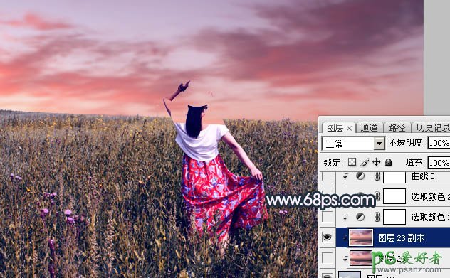 11、用移动工具把天空素材拖进来,调整好位置后创建剪切蒙版。然后选择菜单:滤镜 > 模糊 > 高斯模糊,数值为5,效果如下图。