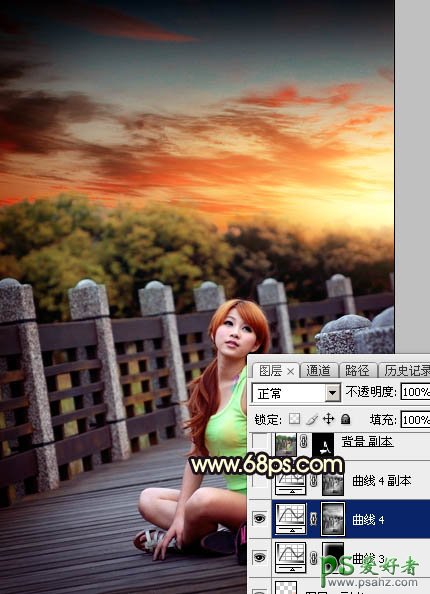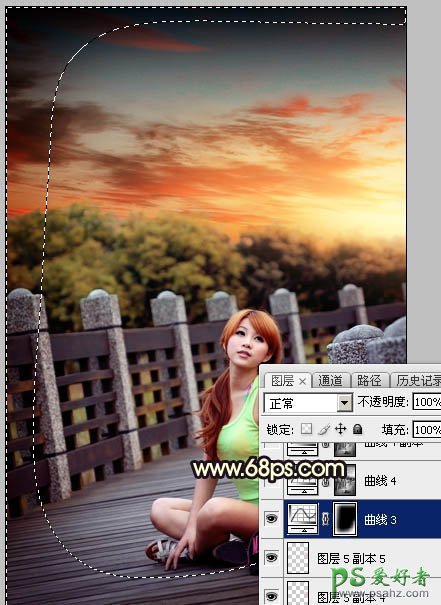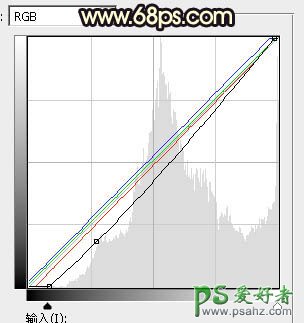 20、创建曲线调整图层,对RGB、绿、蓝通道进行调整,参数设置如图38,确定后把蒙版填充黑色,然后用柔边白色画笔把边角区域擦出来,效果如图39。这一步给图片增加暗角。