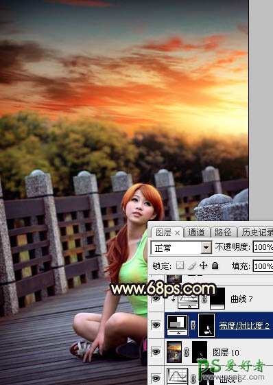 PS美女照片调色:给公园木桥上自拍的可爱女生照片调出唯美橙色