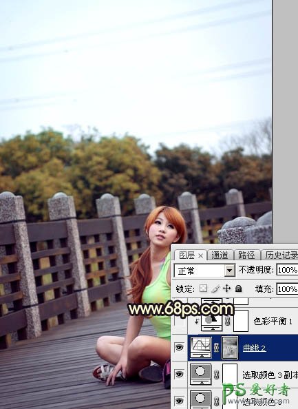 4、按Ctrl + Alt + 2 调出高光选区,按Ctrl + Shift + I 反选,然后创建曲线调整图层,对RGB、红、绿、蓝通道进行调整,参数设置如图8 - 11,效果如图12。这一步把图片暗部调暗,并增加蓝红色。