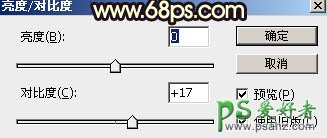 6、创建亮度/对比度调整图层,适当增加对比度,参数设置如图16,确定后创建剪切蒙版,效果如图17。这一步增大图片暗部明暗对比。