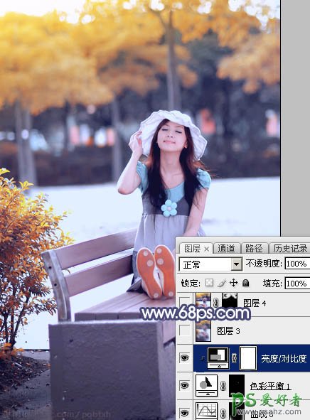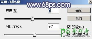 13、创建亮度/对比度调整图层,适当增加对比度,参数设置如图33,确定后按Ctrl + Alt + G 创建剪切蒙版,效果如图34。