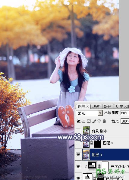 14、新建一个图层,按Ctrl + Alt + Shift + E 盖印图层,然后选择菜单:滤镜 > 模糊 > 动感模糊,角度设置为-45度,距离设置为150,确定后把混合模式改为“柔光”,不透明度改为:50%,效果如下图。这一步把图片柔化处理。