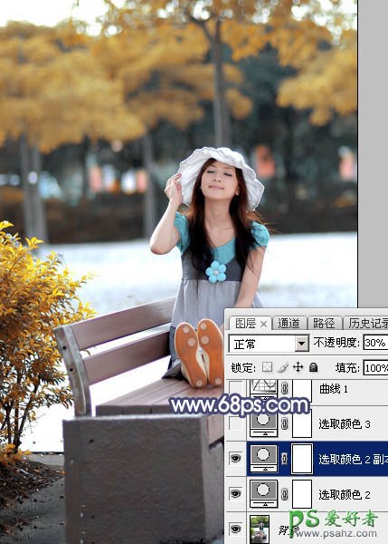 2、按Ctrl + J 把当前可选颜色调整图层复制一层,不透明度改为:30%,效果如下图。