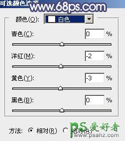 3、创建可选颜色调整图层,对黄、青、蓝、白进行调整,参数设置如图6 - 9,效果如图10。这一步主要把图片中的暖色调暗一点。