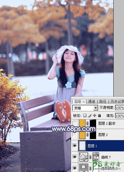 8、按Ctrl + Alt + 2 调出高光选区,然后创建纯色调整图层,颜色设置为淡蓝色:#E2EFFF,确定后把混合模式改为“变暗”,效果如下图。这一步把高光区域泛白的地方转为淡蓝色。