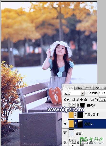 9、创建纯色调整图层,颜色设置为橙黄色:#E6AF39,确定后把蒙版填充黑色,然后用透明度较低的柔边白色画笔把顶部区域擦出来,确定后把混合模式改为“叠加”,效果如下图。