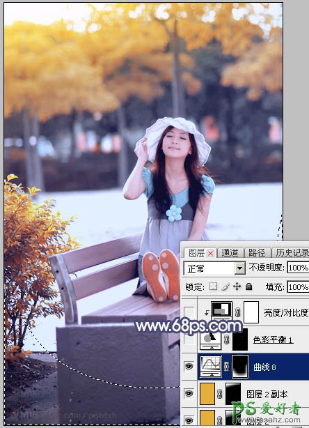 11、创建曲线调整图层,把RGB通道稍微压暗一点,参数设置如图28,确定后把蒙版填充黑色,然后用柔边白色画笔把底部边角部分擦出来,效果如图29。