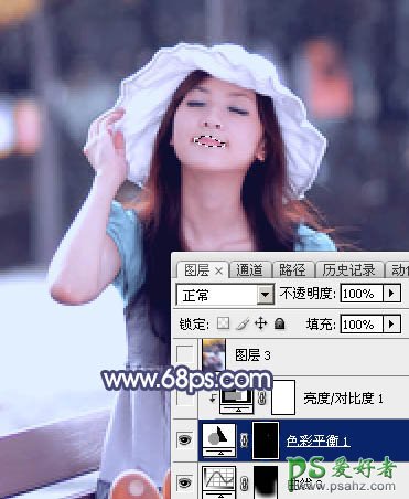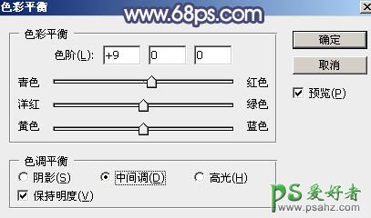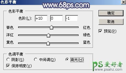 12、用钢笔工具把人物嘴唇部分抠出来,转为选区后创建色彩平衡调整图层,对中间调及高光进行调整,稍微把嘴唇调红润一点,参数及效果如下图。