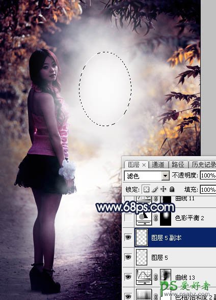 16、按Ctrl + J 把当前图层复制一层,按Ctrl + T 稍微缩小一点,确定后把混合模式改为“滤色”,效果如下图。这一步给图片中间区域渲染高光。