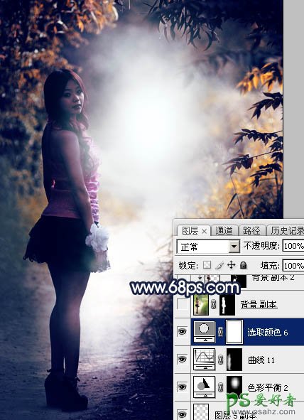 17、创建可选颜色调整图层,对红、黄、蓝、洋红、白、黑进行调整,参数设置如图40 - 45,效果如图46。这一步把图片中暖色及冷色调暗一点。