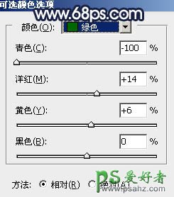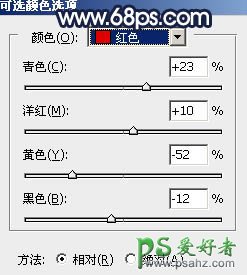 7、创建可选颜色调整图层,对红、黄、绿、青、白、黑进行调整,参数设置如图17 - 22,确定后按Ctrl + Alt + G 创建剪切蒙版,效果如图23。这一步微调图片暗部中的冷暖色。