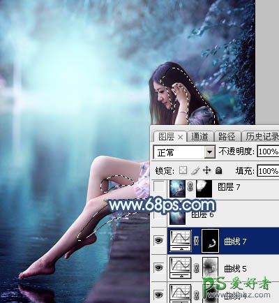 20、创建曲线调整图层,把RGB通道稍微压暗一点,参数设置如图47,确定后把蒙版填充黑色,然后用透明度较低的柔边白色画笔把人物背光区域擦出来,如图48。