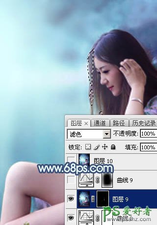 24、新建一个图层,盖印图层。混合模式改为“滤色”,按住Alt键添加图层蒙版,然后用透明度较低柔边白色画笔把人物左侧受光区域涂亮一点,效果如下图。