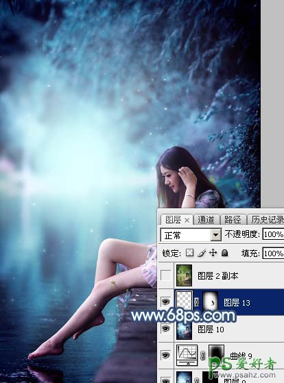 25、新建一个图层,用柔边白色画笔给图片增加一些小点,可以加上一些发光样式,效果如下图。