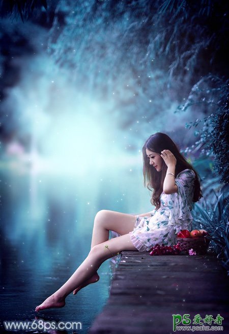 PS调色教程:给未成年清纯少女写真照调出魔幻般的青蓝色效果,素材图片取景比较魔幻,只是颜色还不够唯美,我们平面设计师通过后期调色美化处理让画面变得更加唯美梦幻,最后再给整体柔化处理,喜欢的朋友们好好学习一下吧!