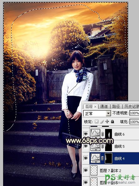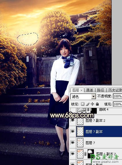 18、按Ctrl + J 把当前图层复制一层,按Ctrl + T 稍微缩小一点,效果如下图。这几步给图片渲染橙黄色高光。