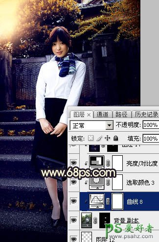 PS调色教程:给未成年清纯少女写真照调出魔幻般的青蓝色效果...