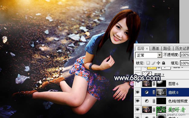 22、按Ctrl + Alt + 2 调出高光选区,然后创建曲线调整图层,对RGB,蓝通道进行调整,参数及效果如下图。这一步把高光区域稍微调暗一点。