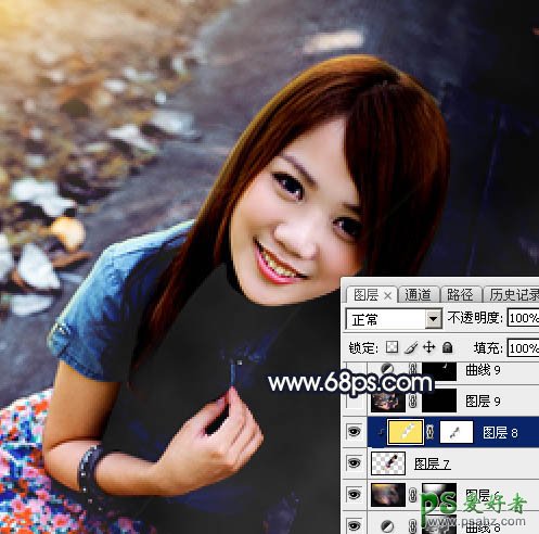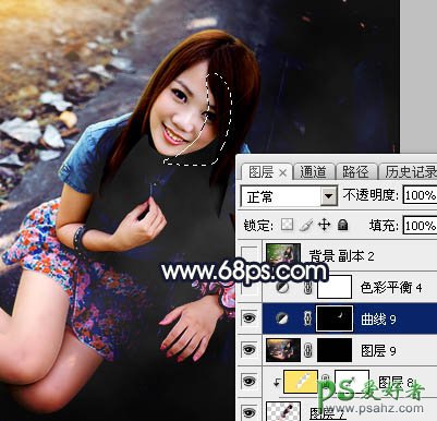 24、创建曲线调整图层,对RGB通道进行调整,参数设置如图54,确定后把蒙版填充黑色,然后用柔边白色画笔把人物脸部背光区域涂暗一点,效果如图55。
