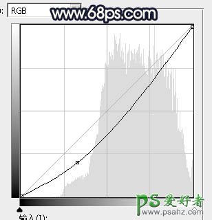 6、按Ctrl + Alt + 2 调出高光选区,然后创建曲线调整图层,对RGB通道进行调整,参数及效果如下图。这一步把图片高光区域稍微调暗一点。