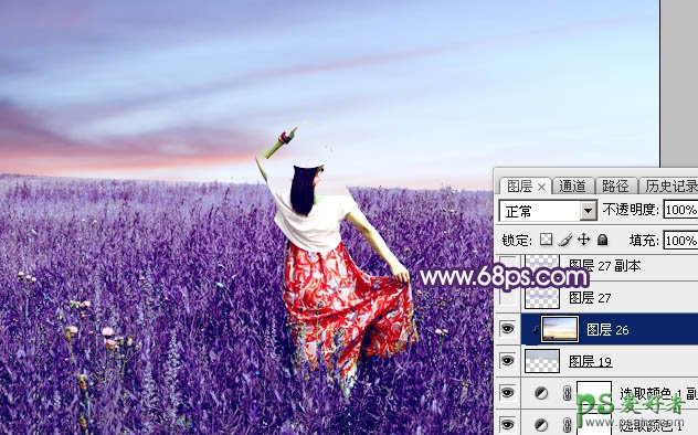 PS美女后期调色:给草原上的唯美意境女生写真照调出魔幻的蓝紫色