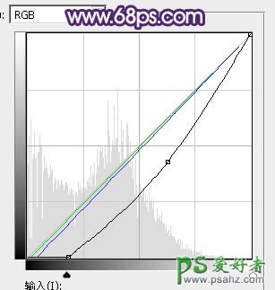 18、创建曲线调整图层,对 RGB、绿、蓝通道进行调整,参数设置如图27,确定后把蒙版填充黑色,然后用柔边白色画笔把底部区域擦出来,如图28。这一步给图片增加暗角。