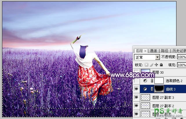 PS美女后期调色:给草原上的唯美意境女生写真照调出魔幻的蓝紫色