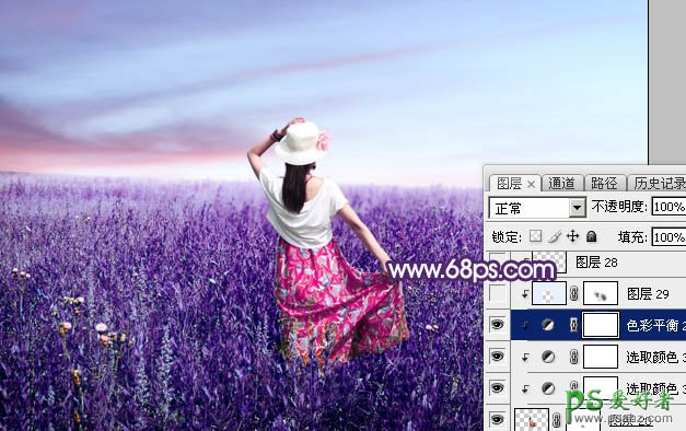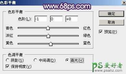 22、创建色彩平衡调整图层,对高光进行调整,参数设置如图35,确定后创建剪切蒙版,效果如图36。这一步给肤色高光区域增加淡蓝色。