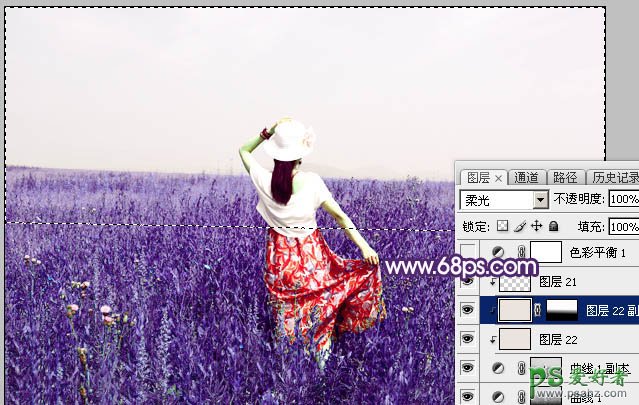 6、按Ctrl + J 把当前纯色调整图层复制一层,创建剪切蒙版后把蒙版填充黑色。然后用柔边白色画笔把上半部分擦出来,如下图。