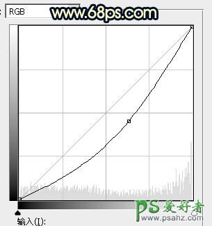 26、创建曲线调整图层,对RGB通道进行调整,参数设置如图40,确定后创建剪切蒙版,并把蒙版填充黑色,然后用柔边白色画笔把肤色底部区域涂暗一点,效果如图41。